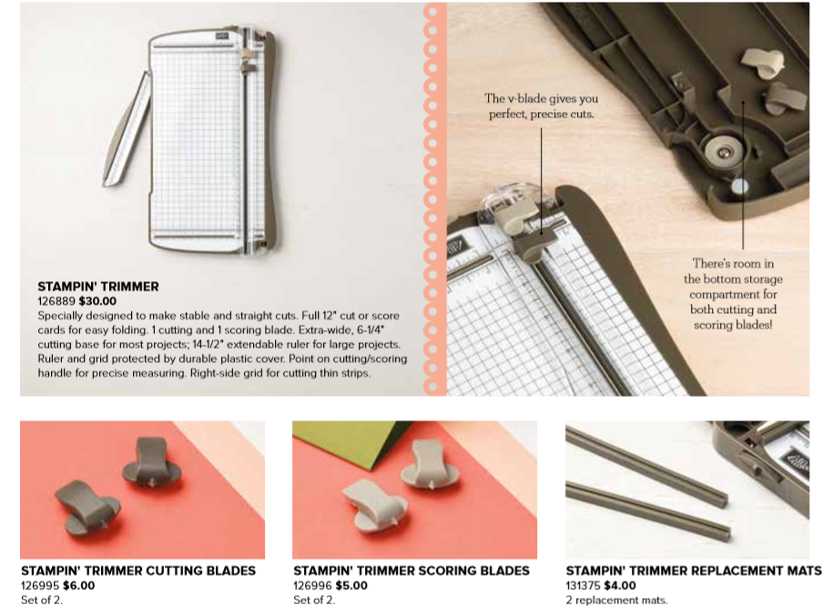 #2. If you currently own our Stampin’ Trimmer, it & it’s accessories will no longer be available June 3, 2019. That include the cutter, cutting blades, scoring blades, and cutting mats. Stampin’ Up! will be coming out with a new cutter in the near future but they don’t have a launch date as of now.